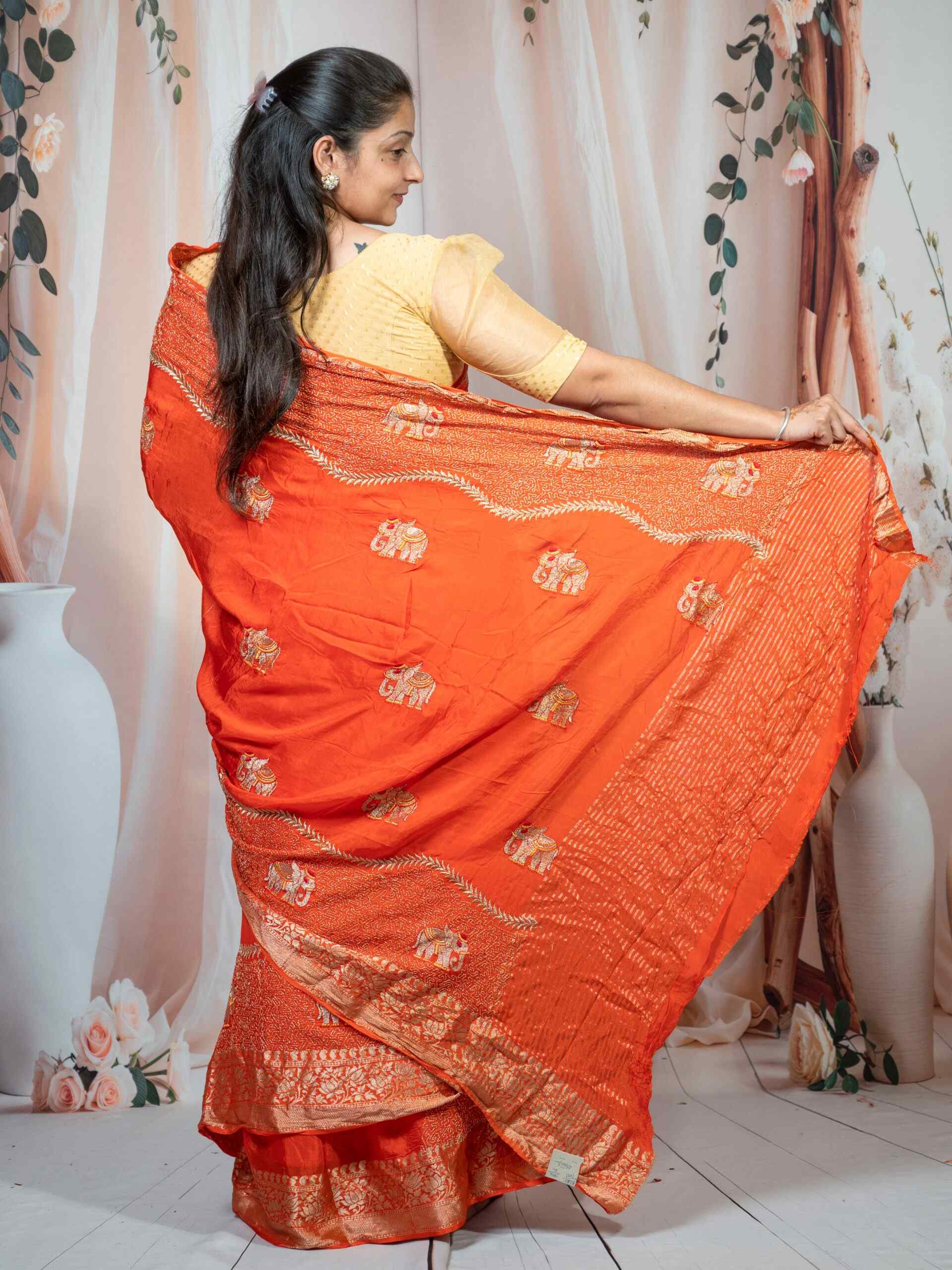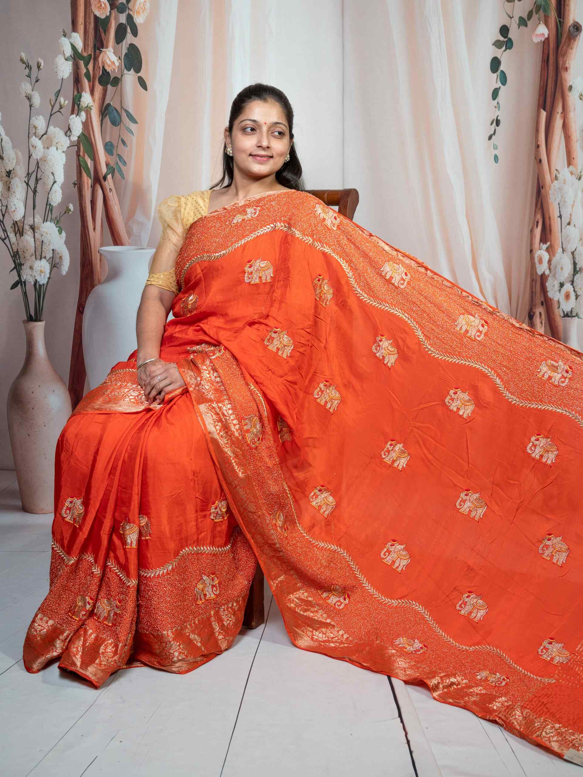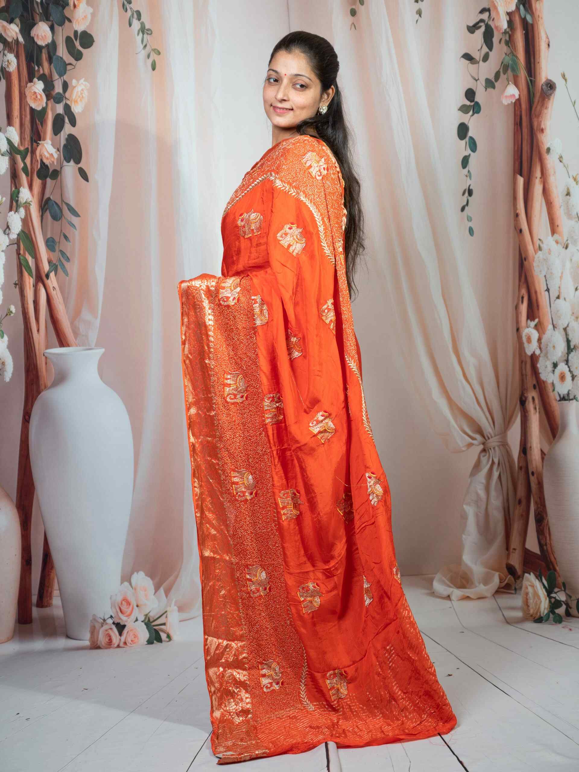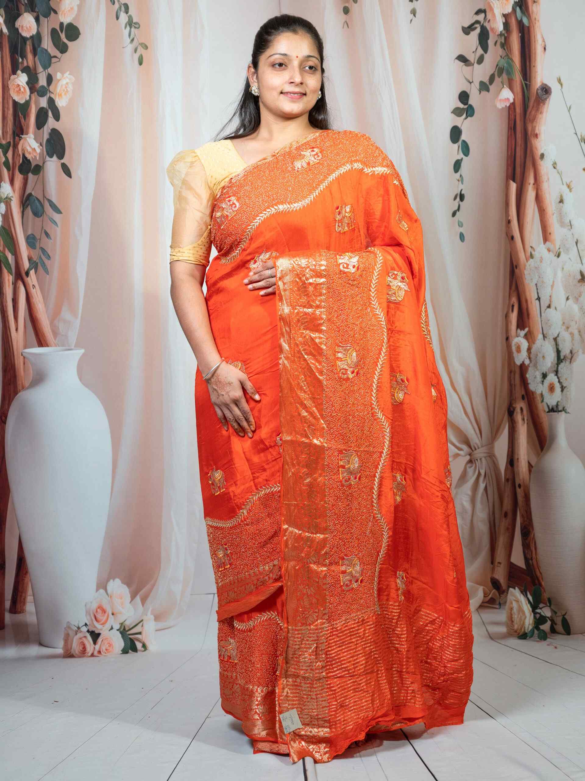 🧡 Elegant orange shade with intricate zari weaving work
