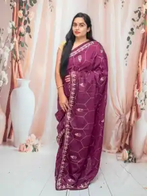 Apni ethnic style mein royal elegance layein is Rani Pink Uppada Silk Saree ke saath. Yeh saree bani hai premium uppada silk fabric se, jo apne soft texture, lightweight feel aur natural sheen ke liye mashhoor hai. Saree par kiya gaya fine embroidery work ise ek traditional aur classy look deta hai.