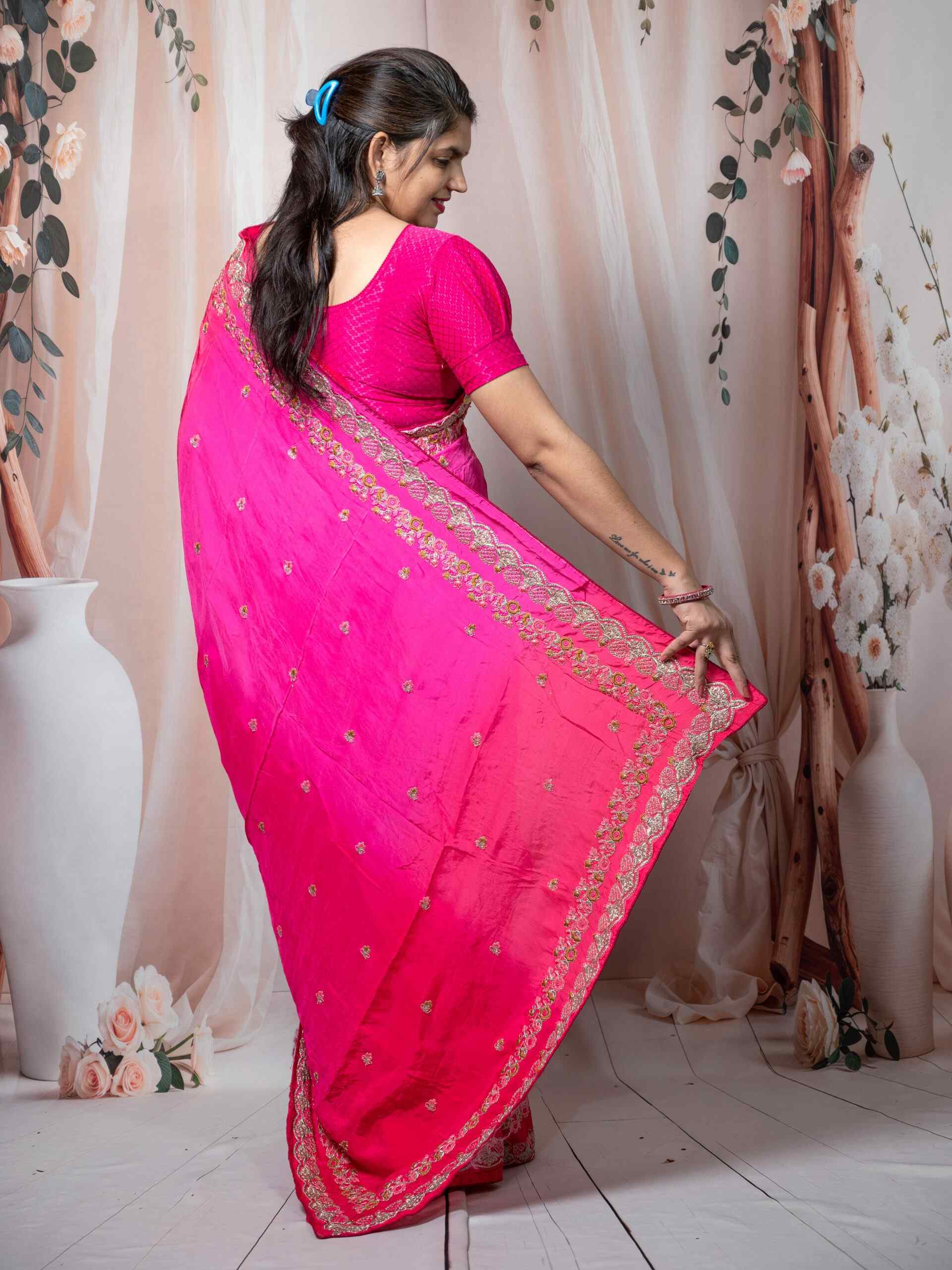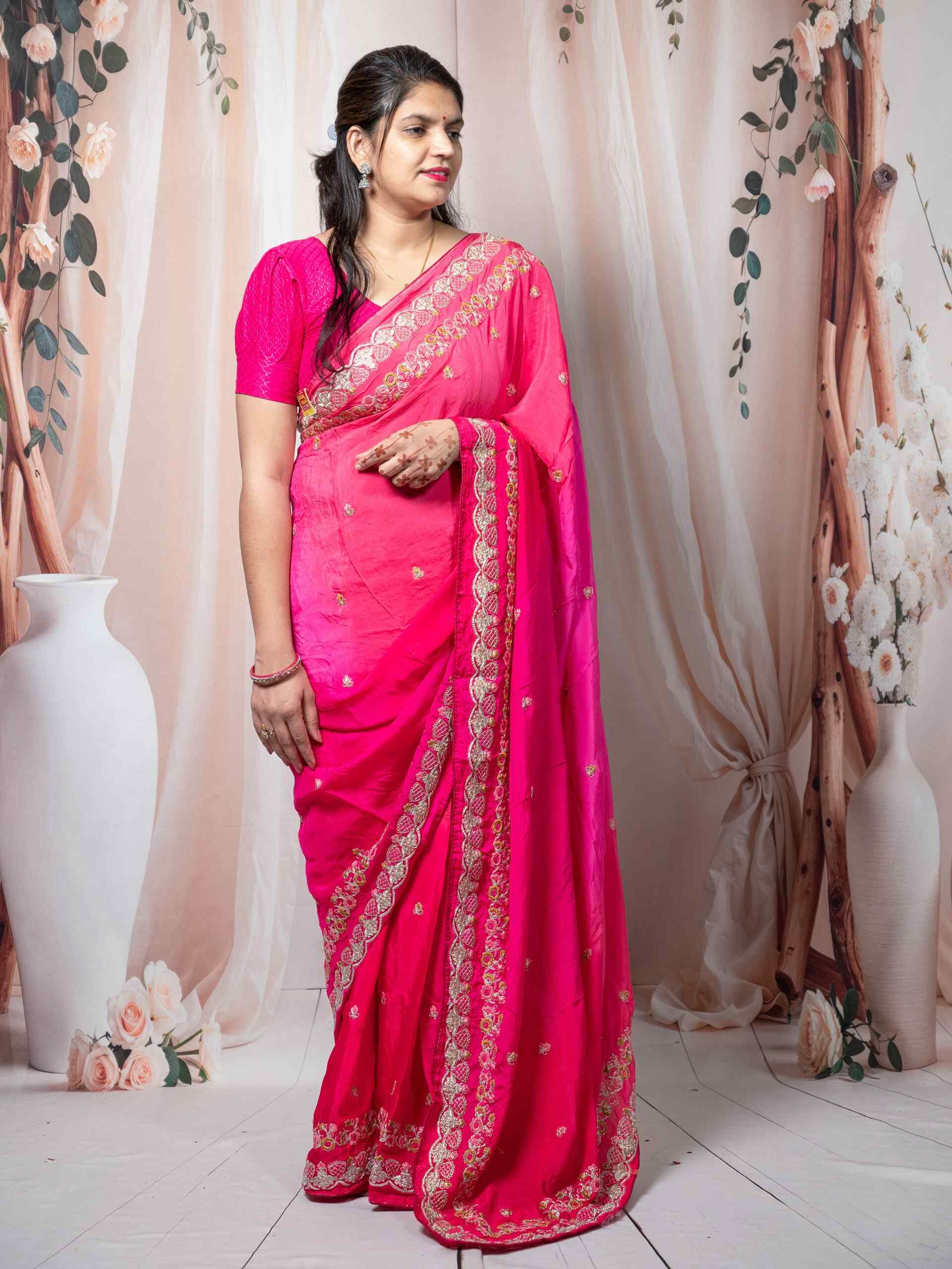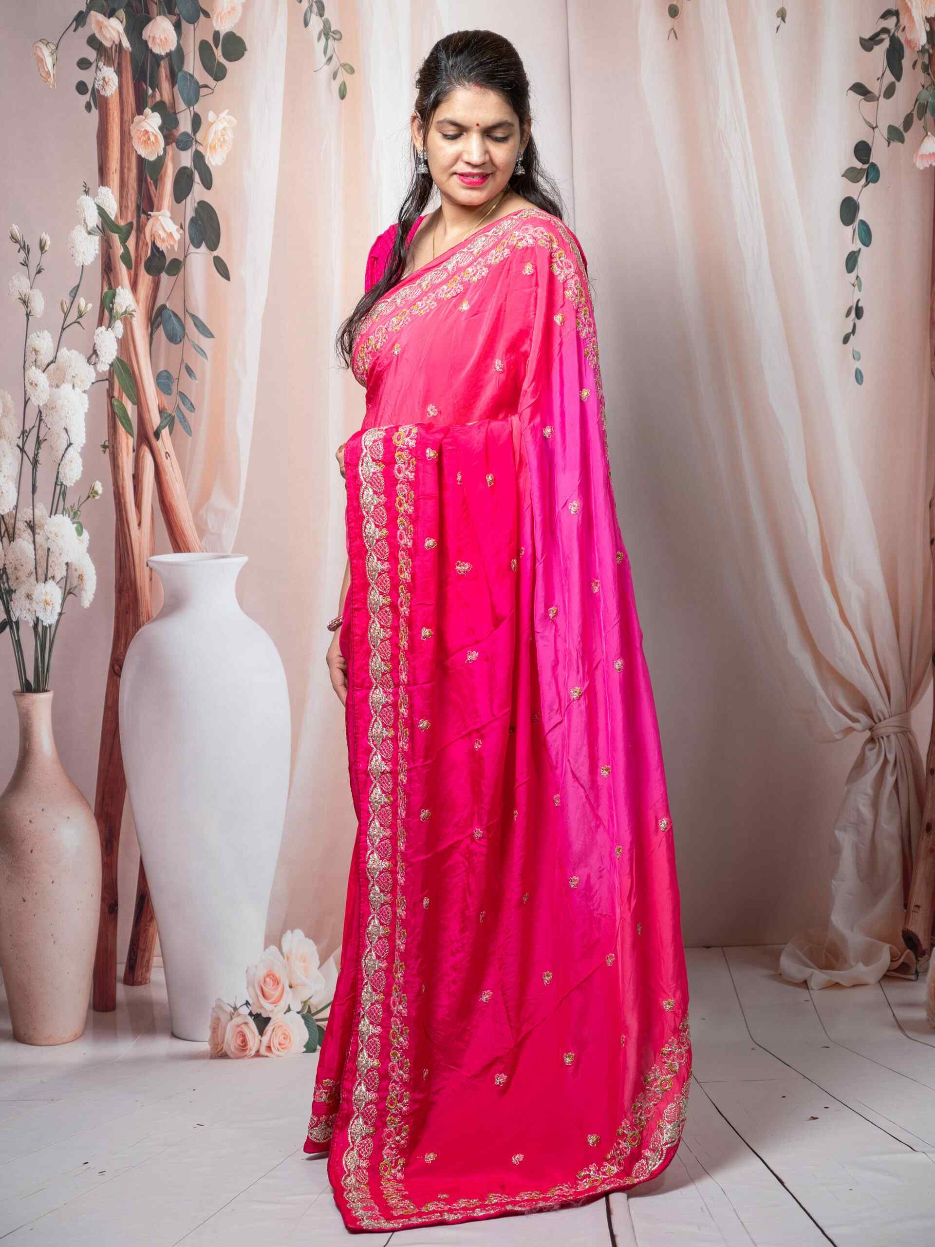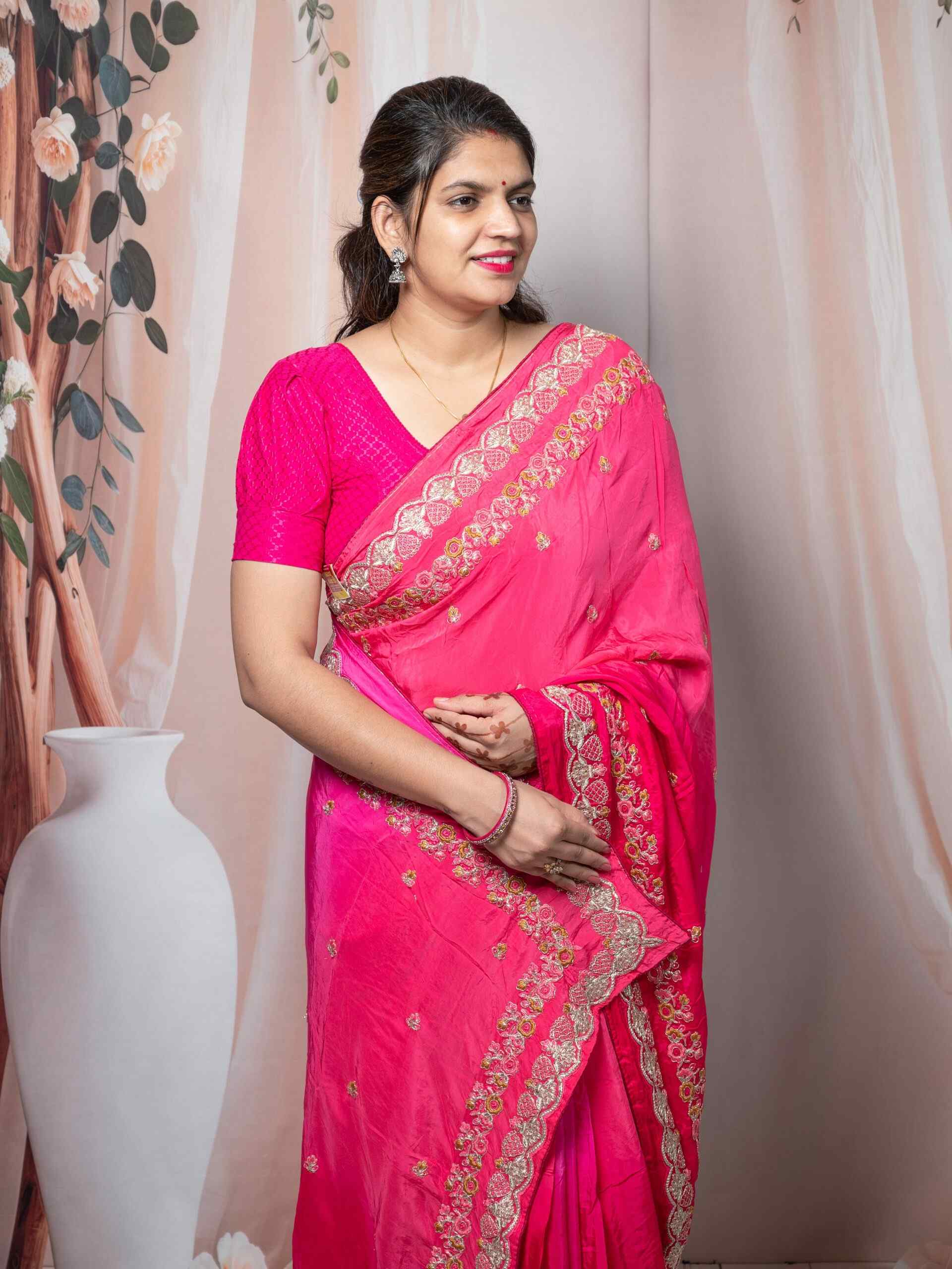 💖 Vibrant Rani Pink shade with intricate embroidery detailing