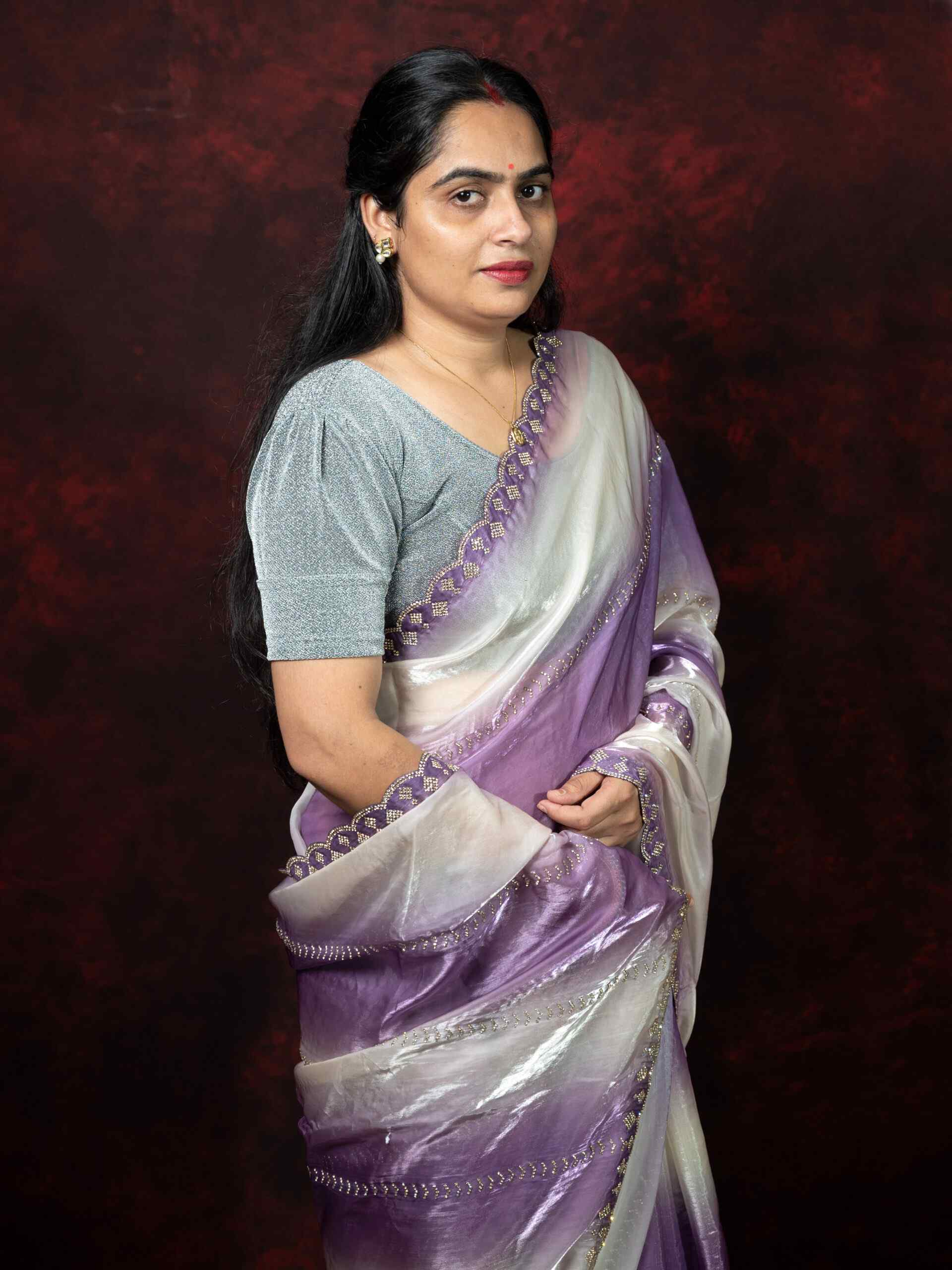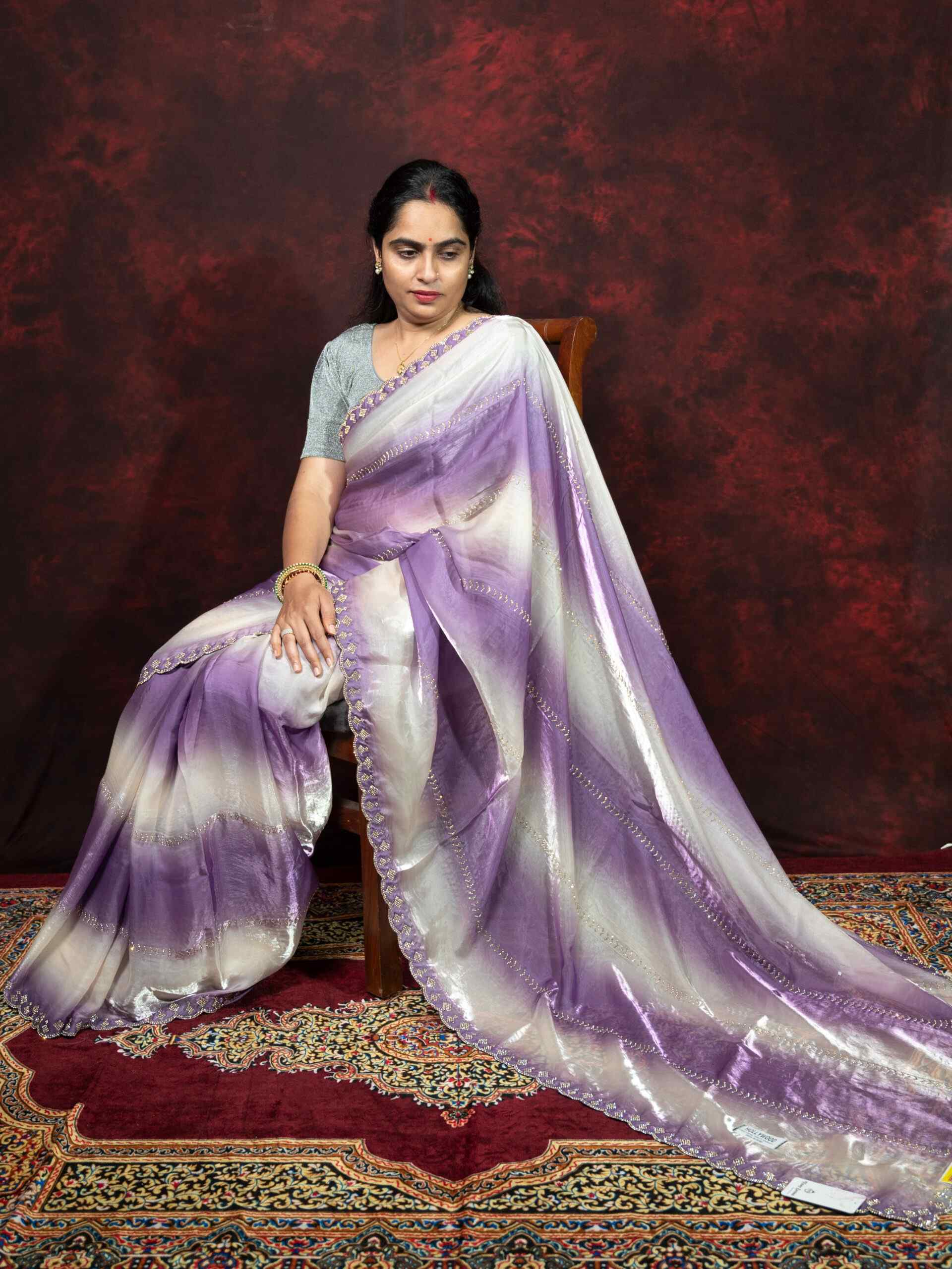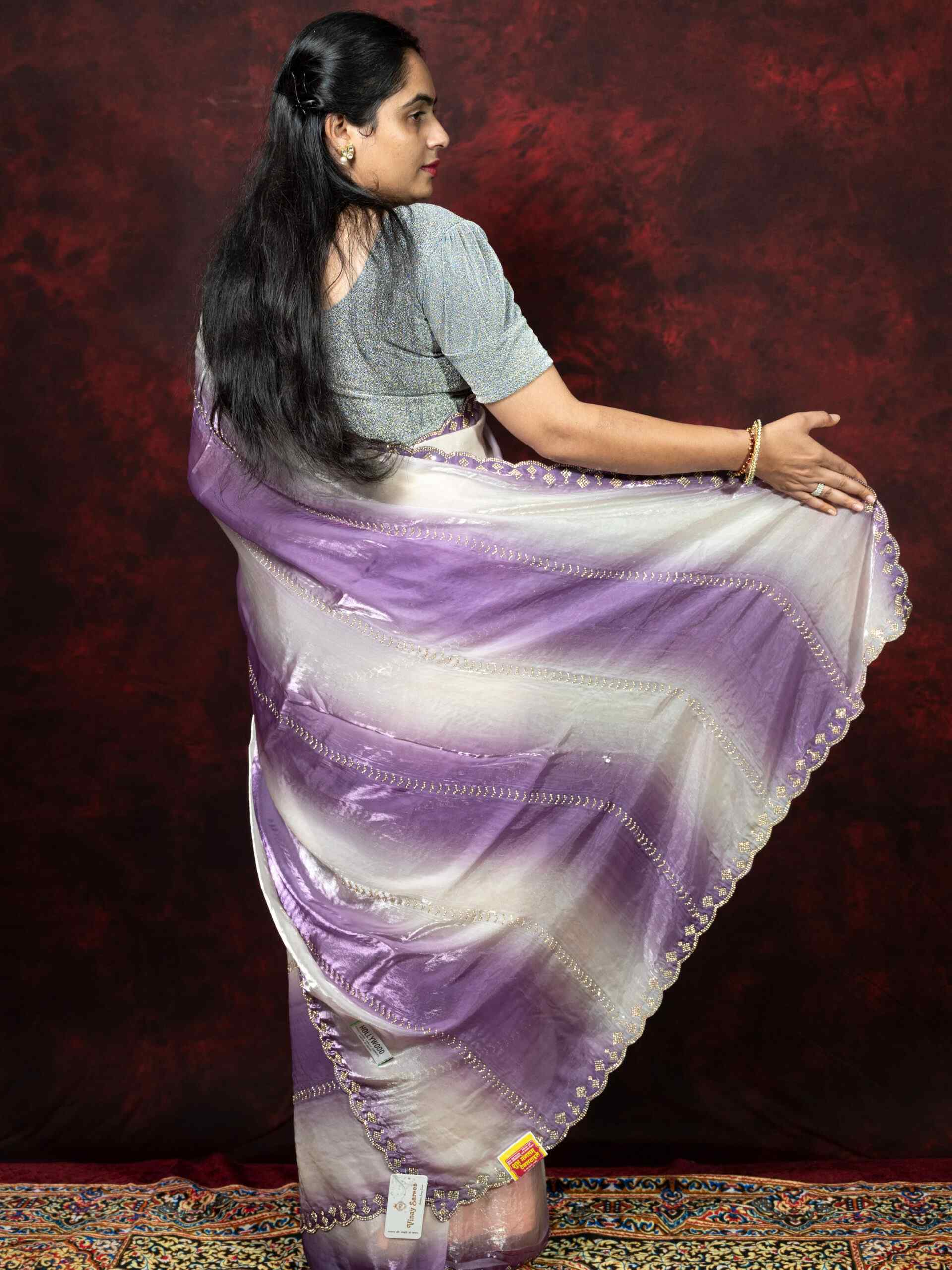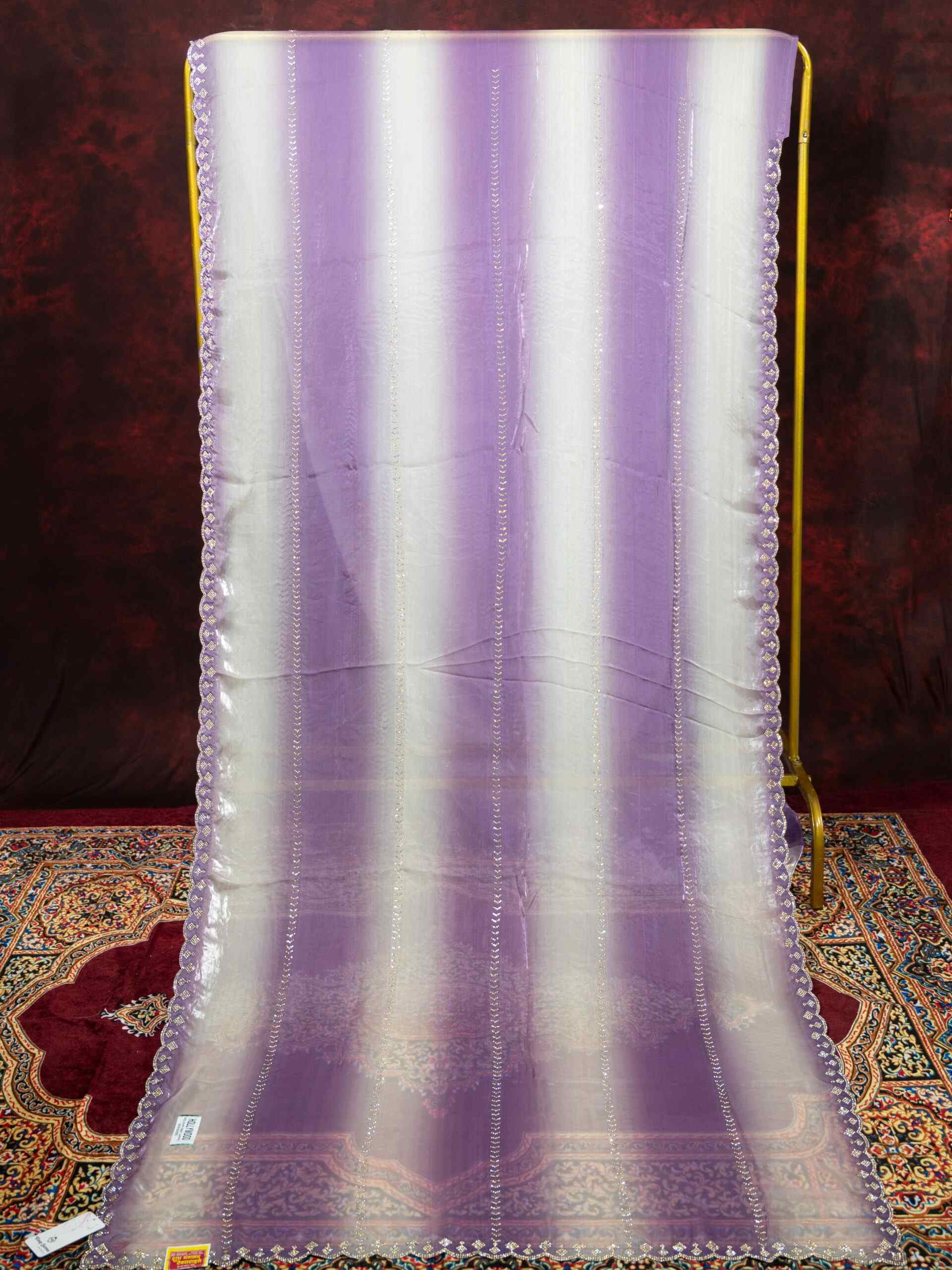 Step into elegance with this stunning Dual Shade White and Light Purple Satin Silk Saree, featuring sparkling Siroski diamond work and a chic cutting border. Made from premium Satin Silk fabric, this saree offers a smooth, glossy texture and graceful drape. The delicate dual-tone combination of white and light purple adds a soft, feminine charm, making it ideal for parties, receptions, and festive occasions.