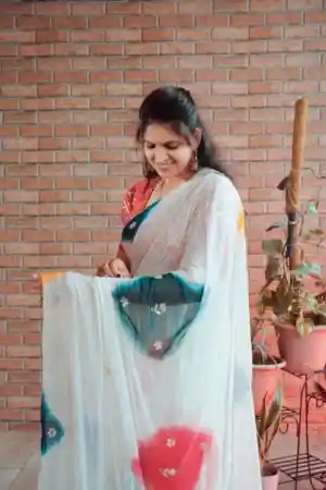 Lightweight and easy to carry, this saree comes with a matching blouse piece, completing your ethnic ensemble with sophistication and elegance. Whether it’s a wedding, reception, or festive gathering, this saree promises a standout look.