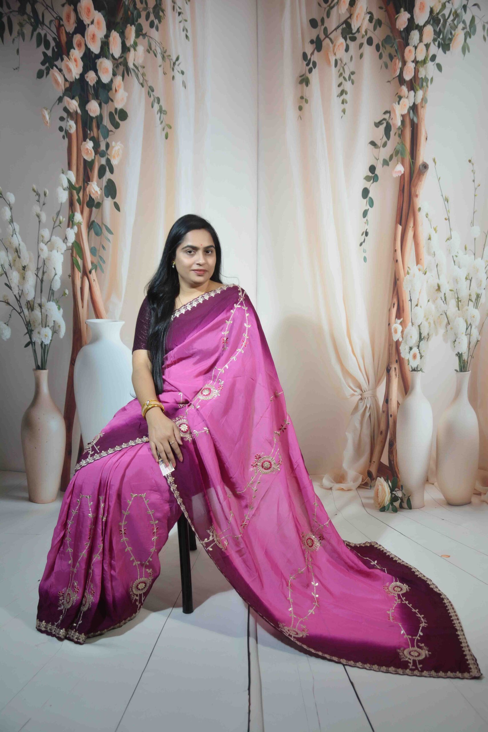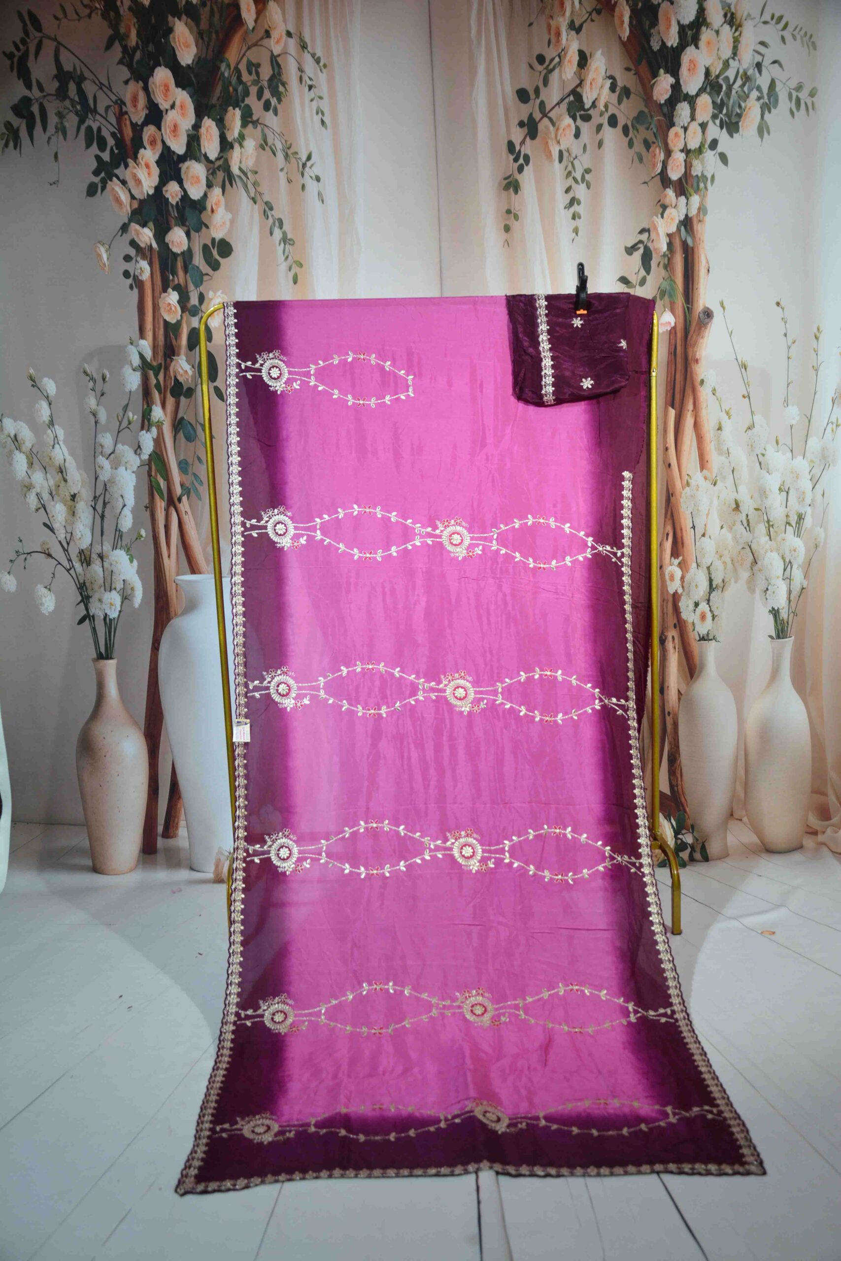 Stunning Majenta H/O Fabric saree embellished with traditional Gotta Patti embroidery. Rich, elegant, and perfect for weddings, festive functions, and cultural celebrations.