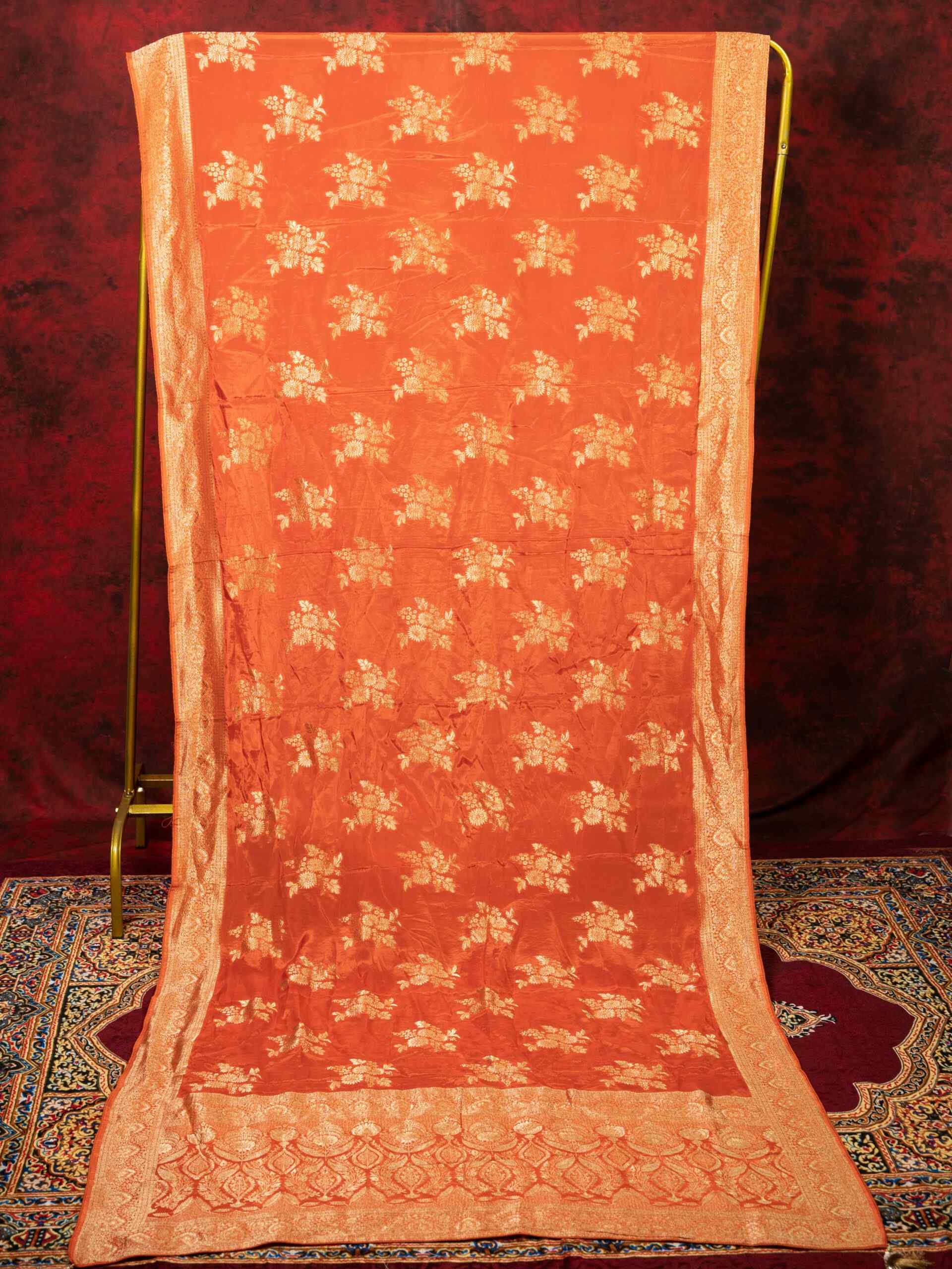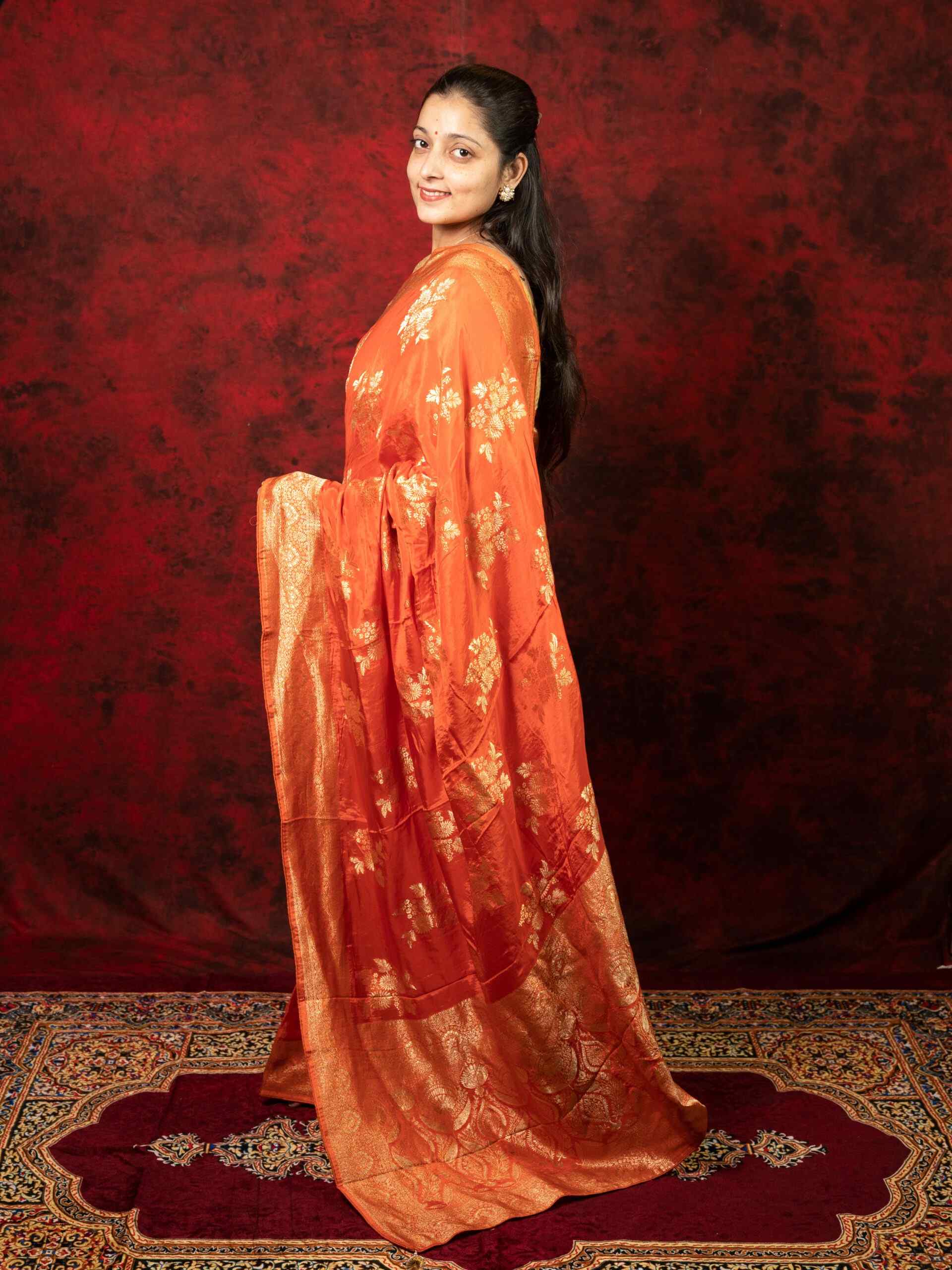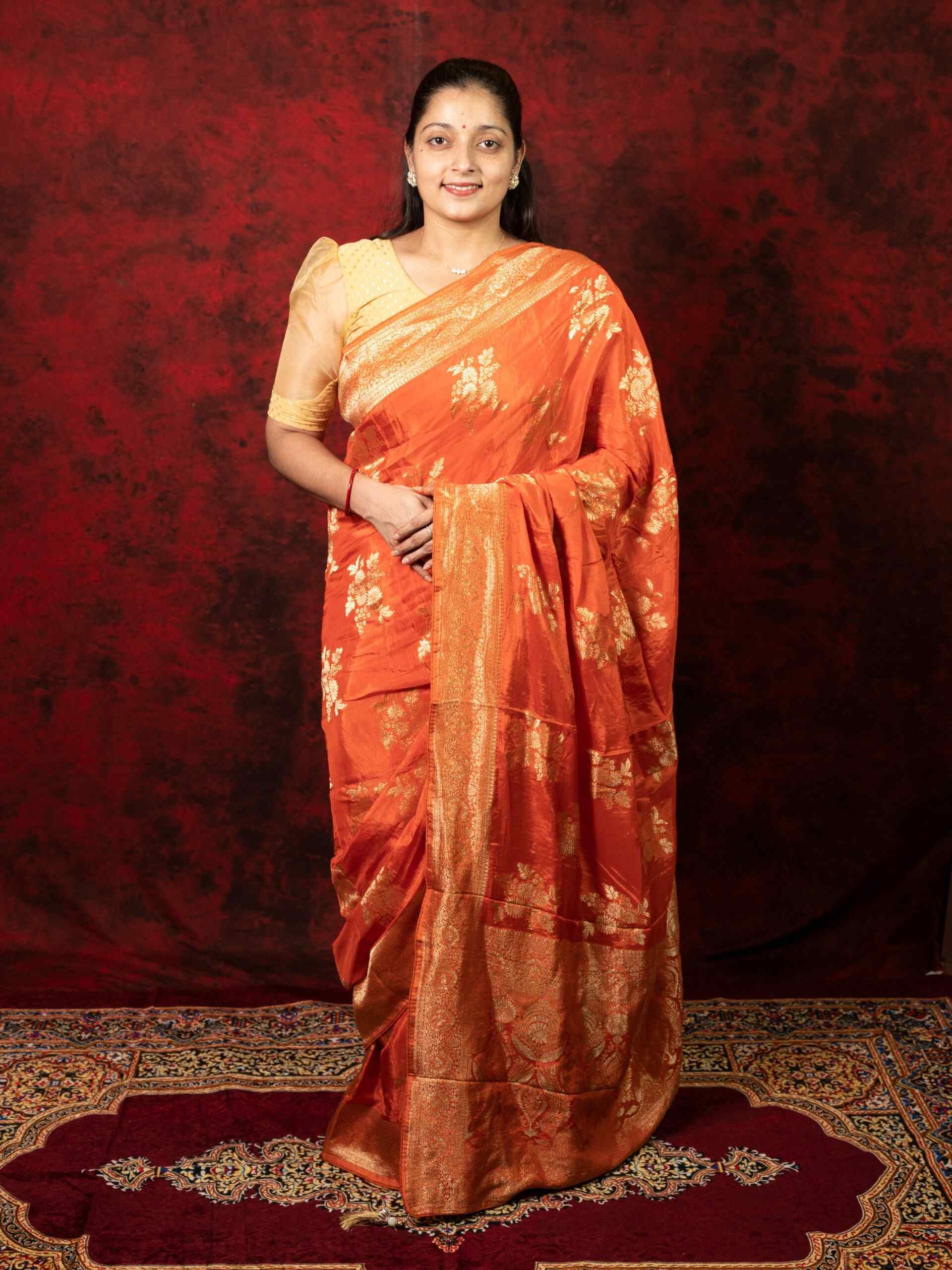 Radiate timeless elegance with our exquisite Orange Pure Dola Silk Saree!