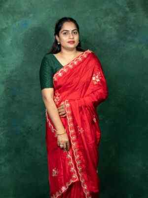 Enhance your ethnic elegance with this luxurious Rani Upadda Silk Saree, beautifully adorned with intricate Zardozi handwork. Crafted from fine Upadda silk fabric, this saree exudes richness with its soft texture, glossy sheen, and graceful fall. The vibrant rani color paired with traditional zardozi craftsmanship makes it a perfect choice for weddings, festive occasions, and grand celebrations.