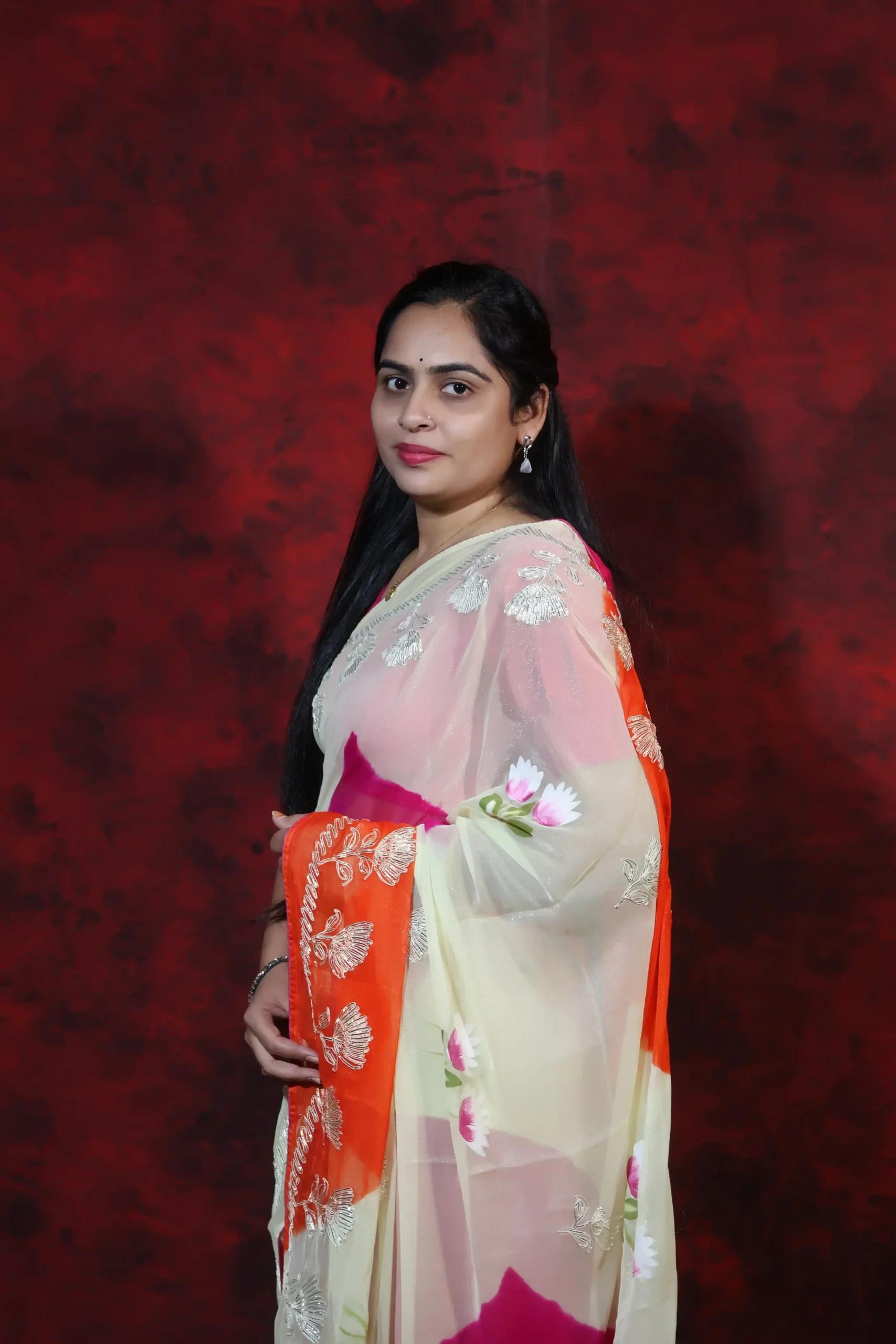 Beautiful White, Orange & Rani color fusion